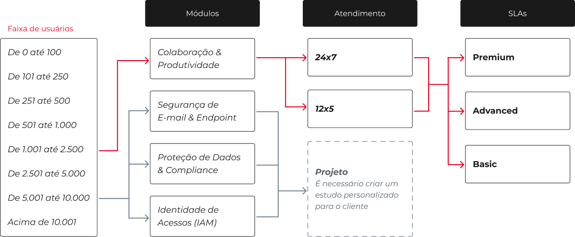 Adaptamos o Microsoft 365 às reais necessidades do seu negócio, oferecendo soluções sob medida, licenças flexíveis e uma jornada de transformação digital em suas operações, que acompanha o crescimento da sua empresa.